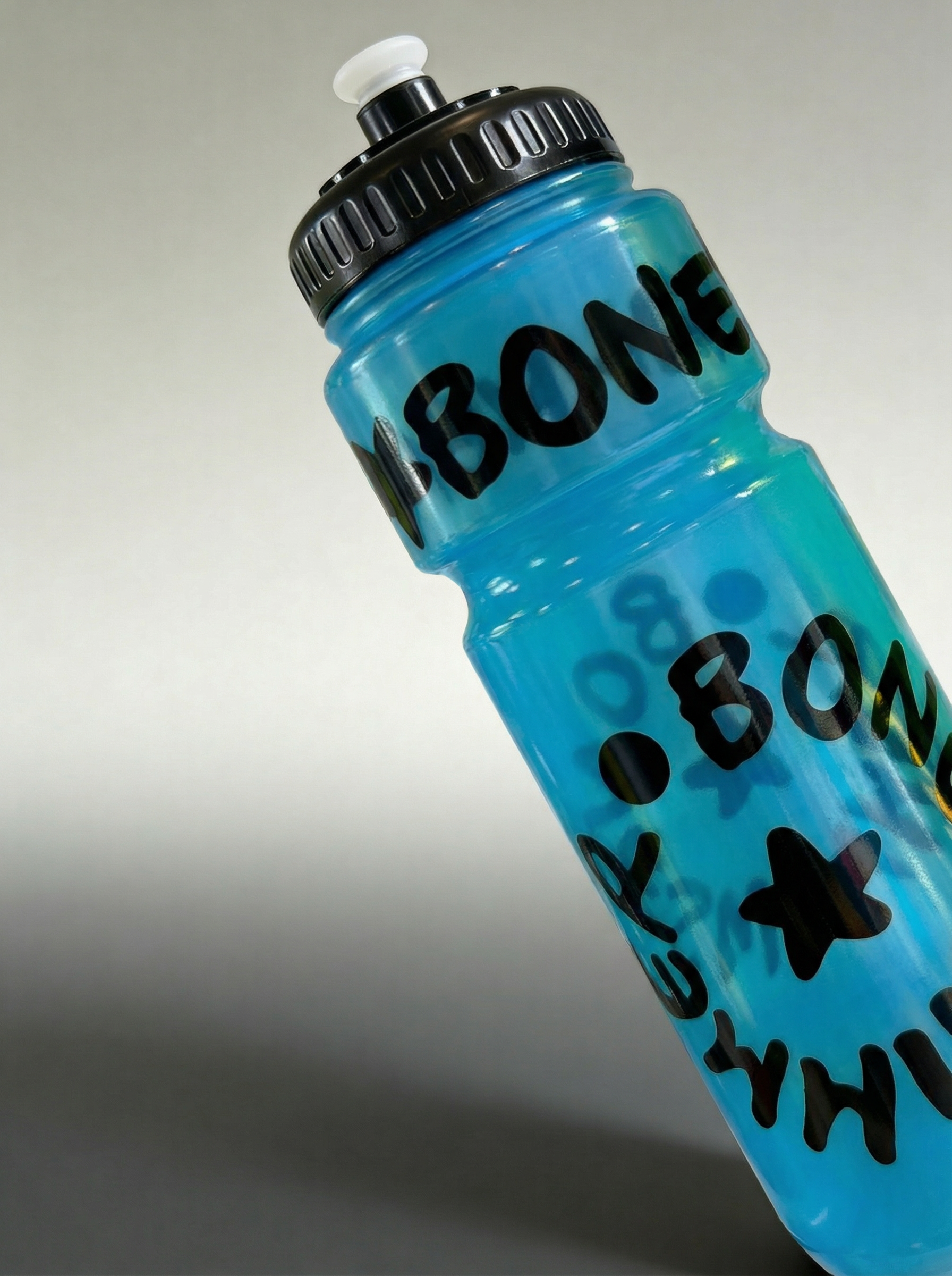 Sportfles 750 ml met tuitdop - BONESWIMMER Lichtblauw Transparant Zwart Logo