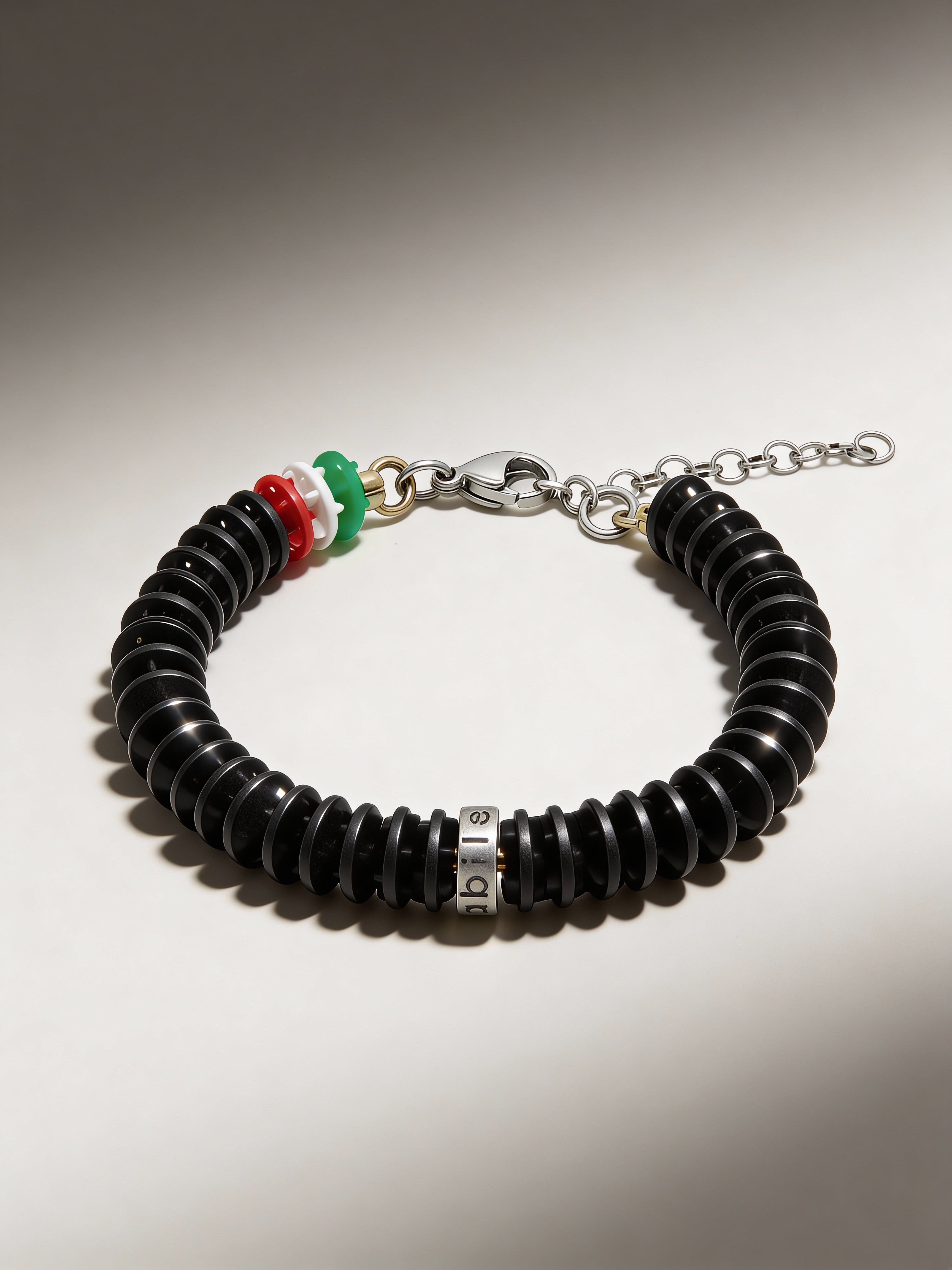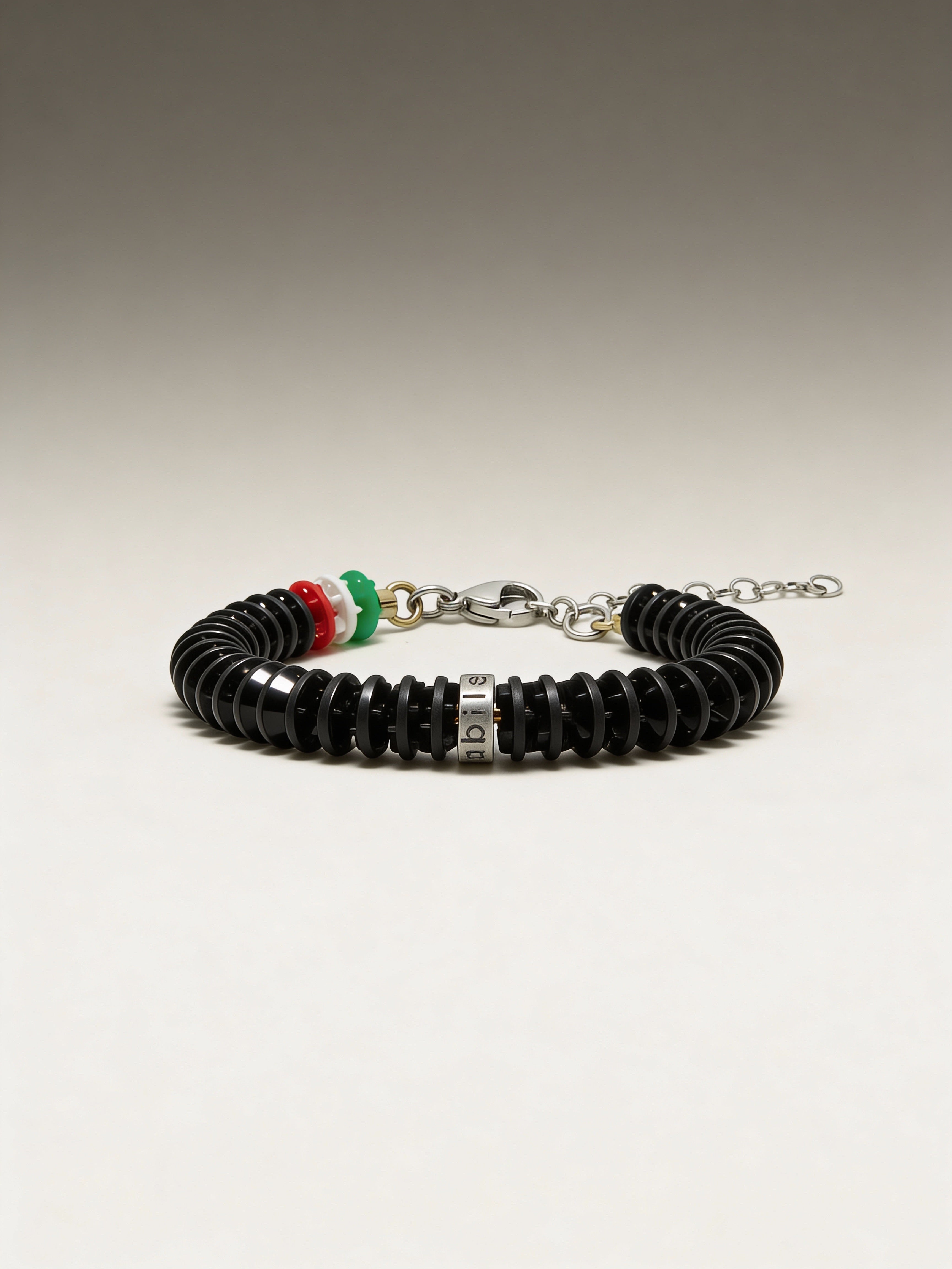 Armband Corsia Victory 613 BONESWIMMER: volledig zwart essentieel, met een bescheiden driekleurig merkteken vlakbij de sluiting voor een nauwkeurig contrast.