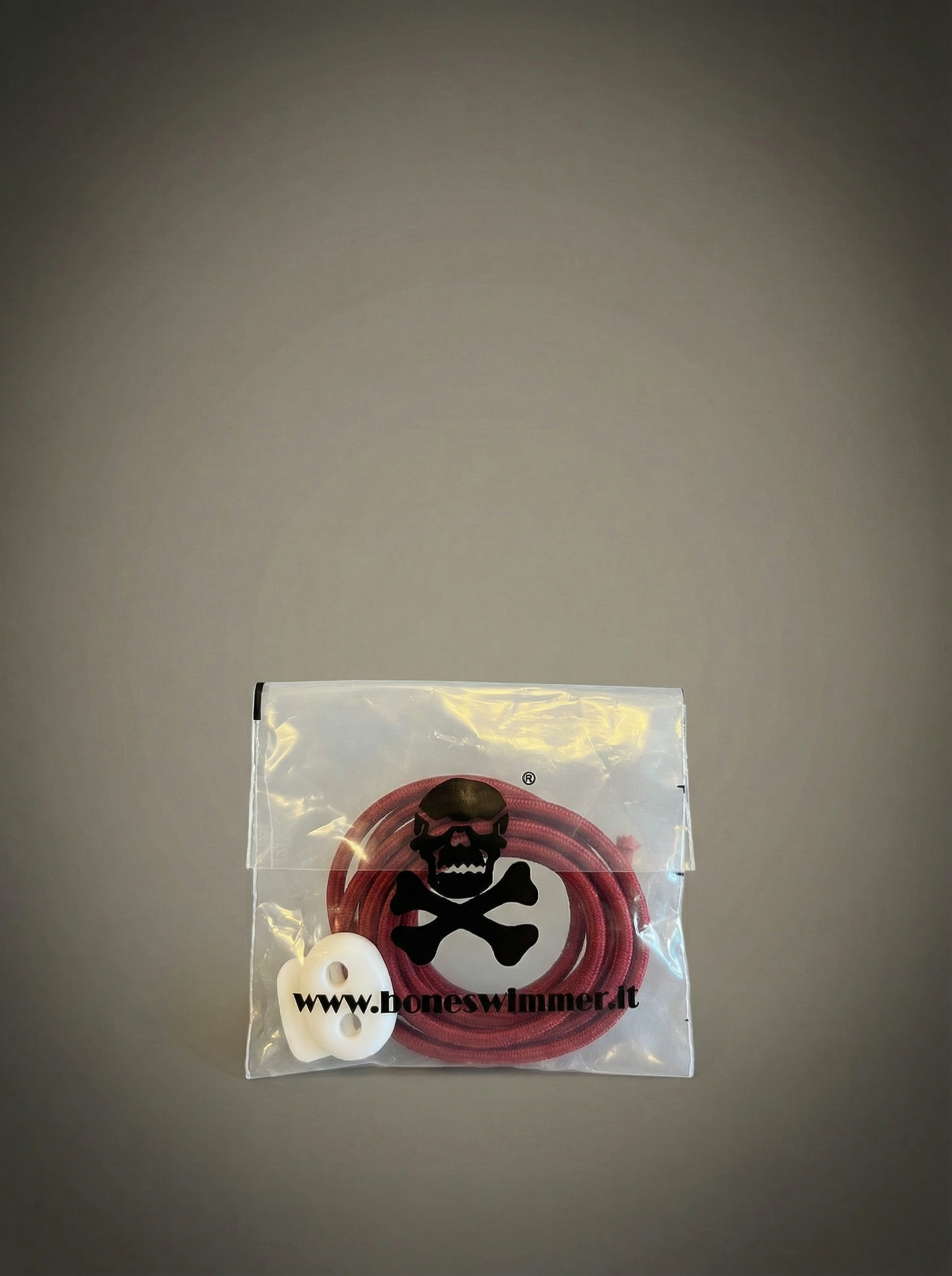 Wordt geleverd in een plastic zakje met BONESWIMMER-logo: in elke verpakking vind je 1 koord (1 m) + 1 koordstopper.