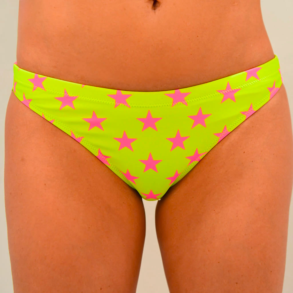 Dames bikini slip voor zee Papeete L024PAF - Geel Sterren Fuchsia Fluo