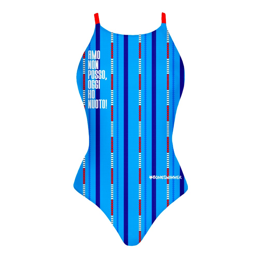 Een one piece ontworpen om bewegingsvrijheid en een veilige pasvorm te bieden tijdens de meest intensieve trainingen, met dunne bandjes.