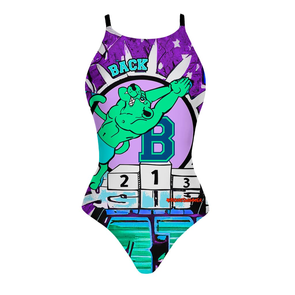 Stijl: speciaal voor rugslagzwemmers (back), met een stedelijke en krachtige uitstraling, ideaal voor wie een badpak zoekt dat functionaliteit en karakter combineert. De popgrafiek, met een panter die rugslag duikt, straalt energie, vastberadenheid en een competitieve geest uit, waardoor het perfect is voor training in het zwembad. Een gedurfd ontwerp dat een sterke, zelfverzekerde persoonlijkheid vertelt, klaar om op te vallen binnen en buiten het water.