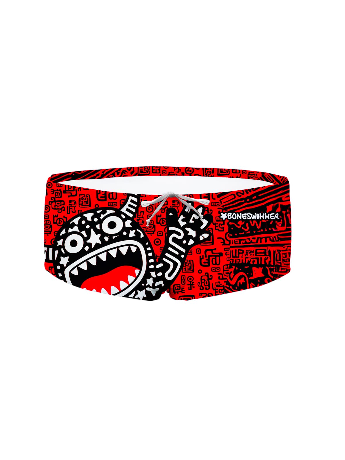 Het ontwerp is geïnspireerd op tribale motieven, met scherpe lijnen en uitgesproken contrasten die een energiek en mannelijk patroon creëren. De print is ontworpen om goed zichtbaar te zijn in het water, wat een sterke identiteit en een competitief karakter geeft.