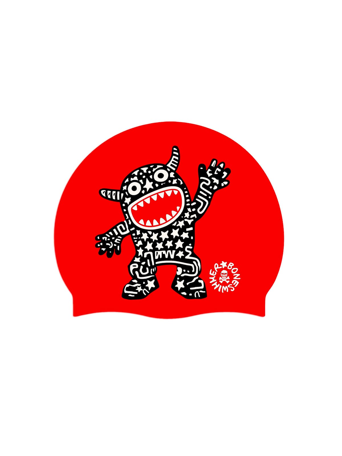 Dikke siliconen badmuts, bedrukt in fluokleuren om te combineren met onze unconventional badpakken