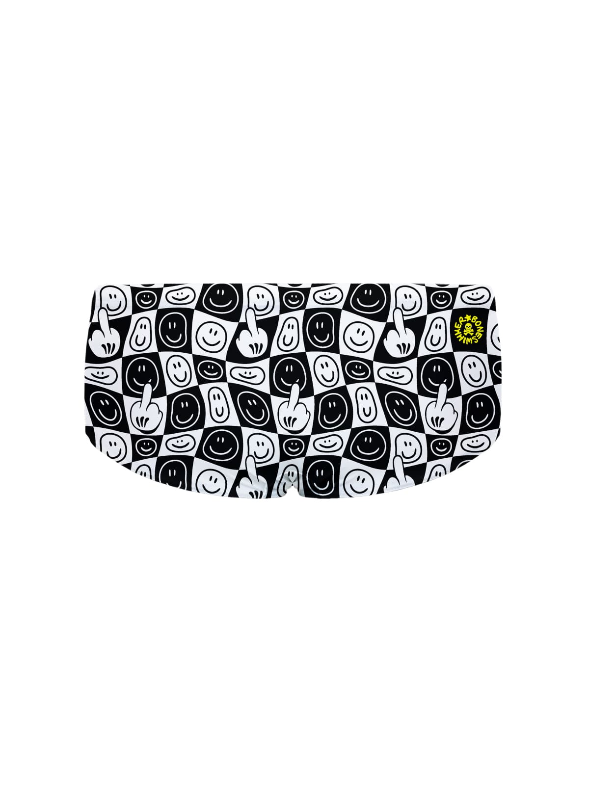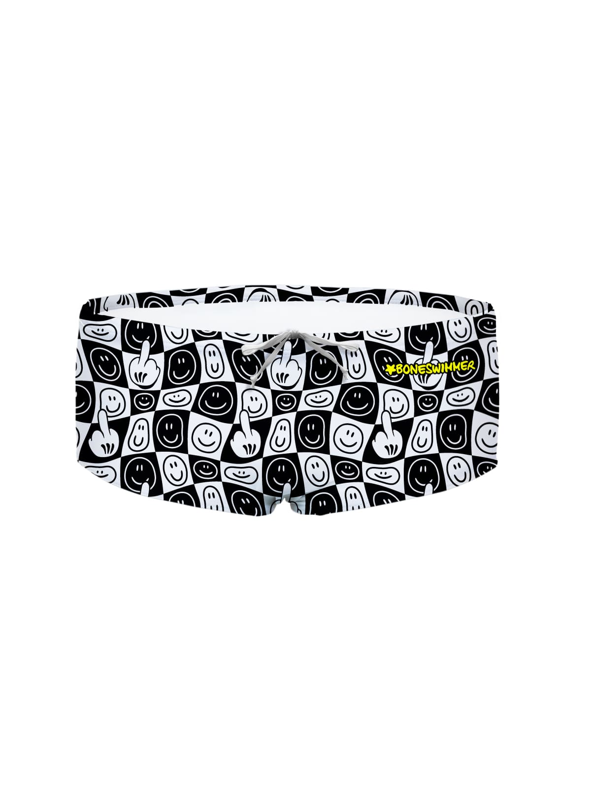 Trainingsboxer, model Ucla. “Fumetto” print: herhalend dambordpatroon in zwart-wit met ironische grafische elementen in contrast.