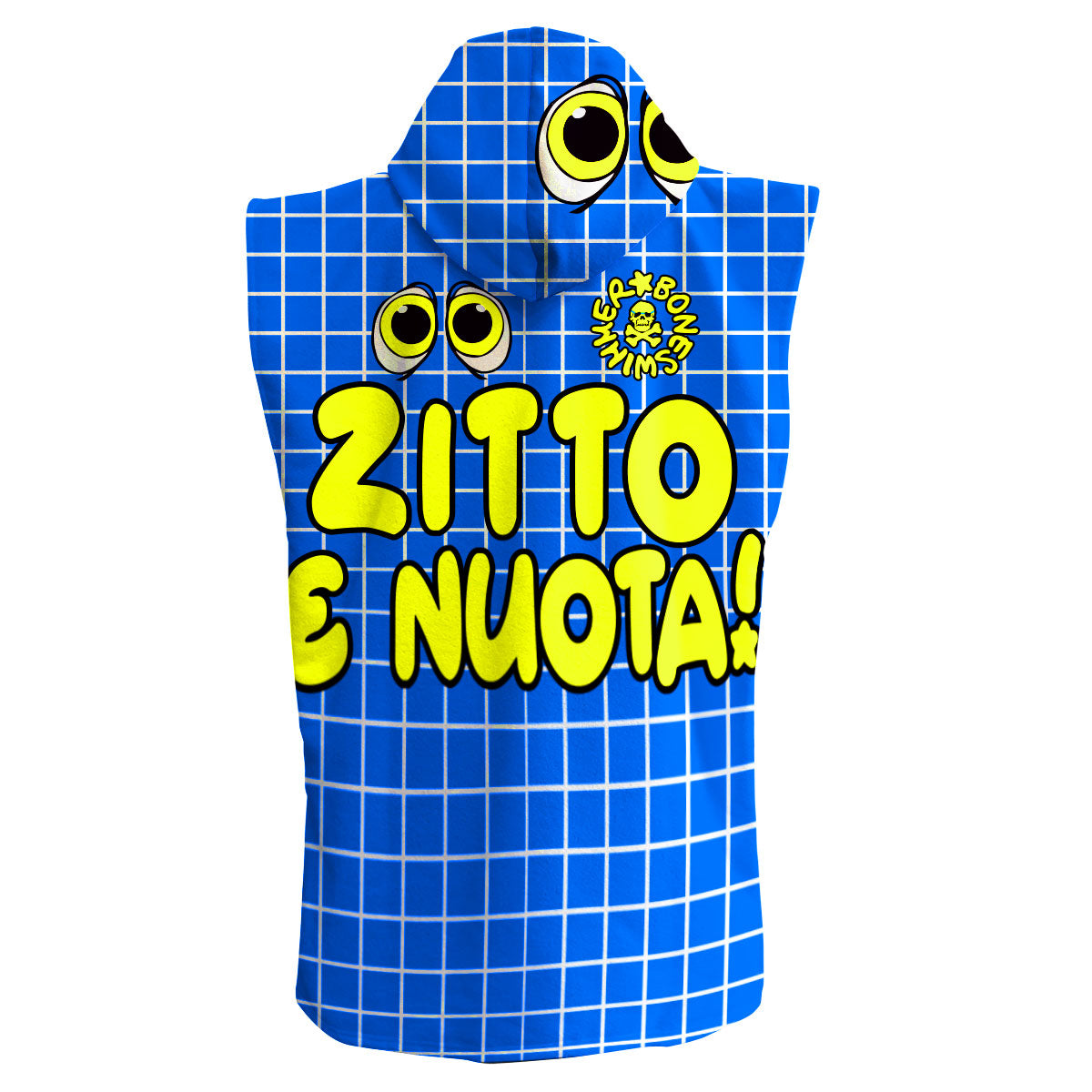 BONESWIMMER kinderponcho van microvezel, met de krachtige print Zitto E Nuota. Omhullend en praktisch, is het de perfecte bondgenoot om stijlvol en comfortabel aan de rand van het zwembad te wisselen, waarbij functionaliteit en design worden gecombineerd.