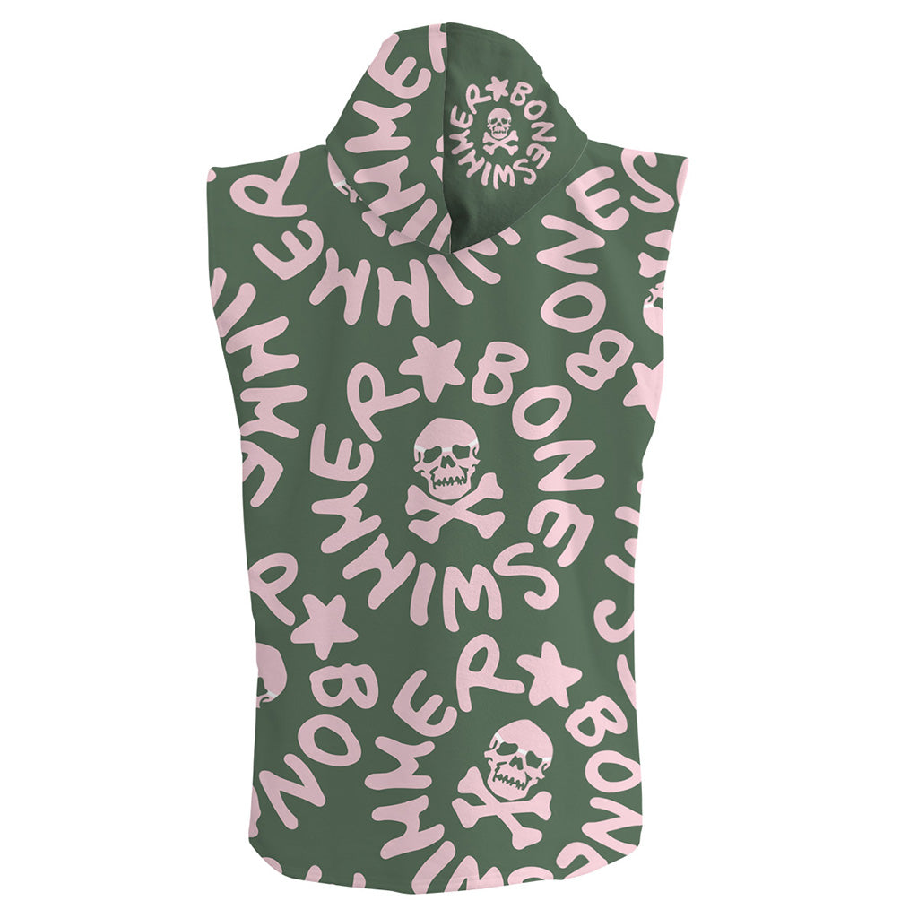 Print: Lichtroze Boneswimmer® logo op militaire groene achtergrond.