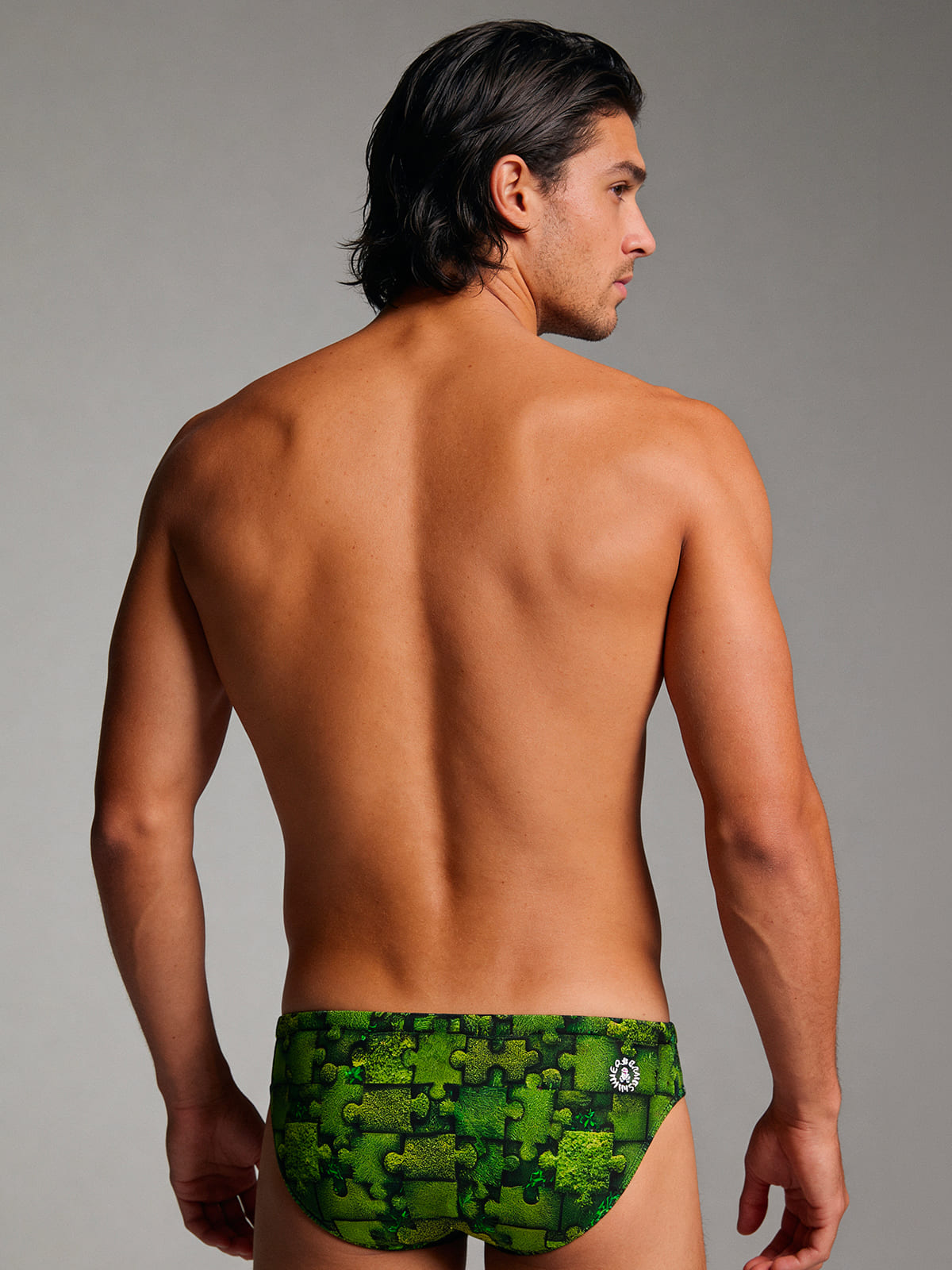 Slip badpak voor training, model H2otto. Print “Puzzle”: all-over samengesteld uit een patroon volledig bestaande uit puzzelstukjes met grasmattextuur.