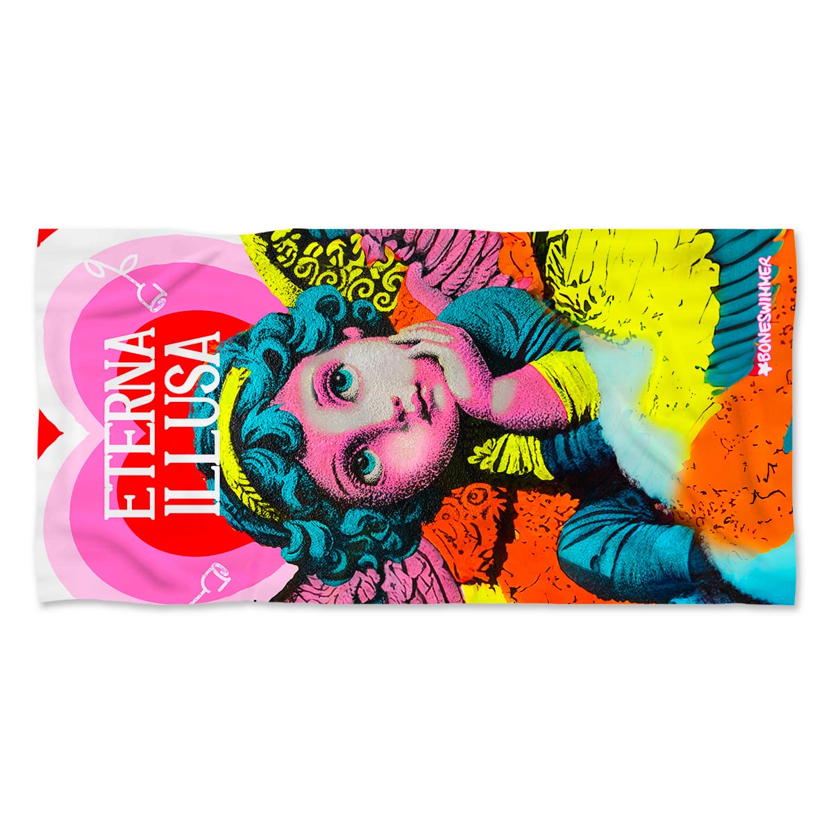 Groot BONESWIMMER microvezelhanddoek, Illusa-print. Zacht, absorberend en sneldrogend: de perfecte metgezel na het zwembad.