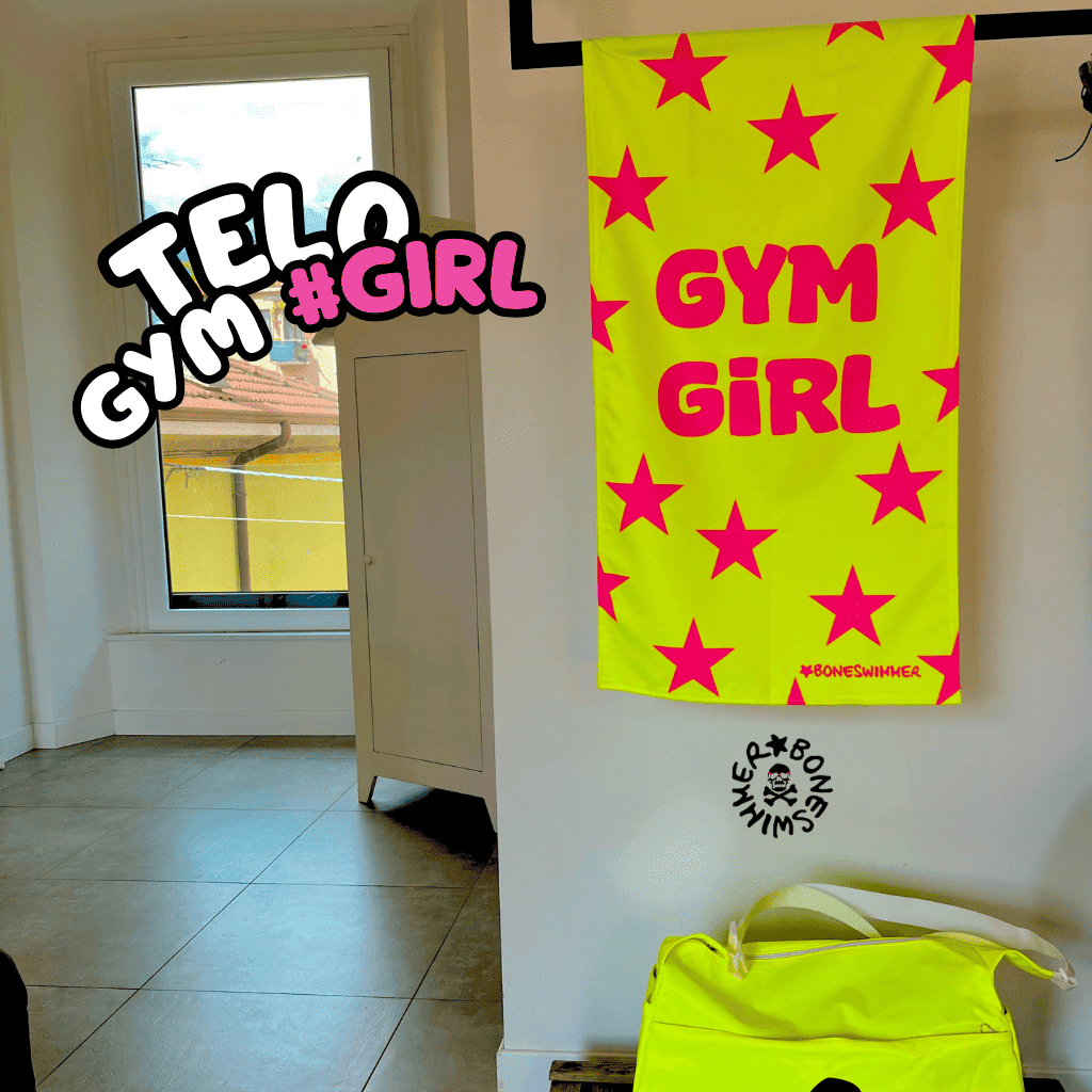 Stijl: geen compromissen in deze volledig fluorescerende handdoek. Het is de gedurfde handtekening van wie weet dat kracht niet alleen in de spieren zit, maar in de houding.