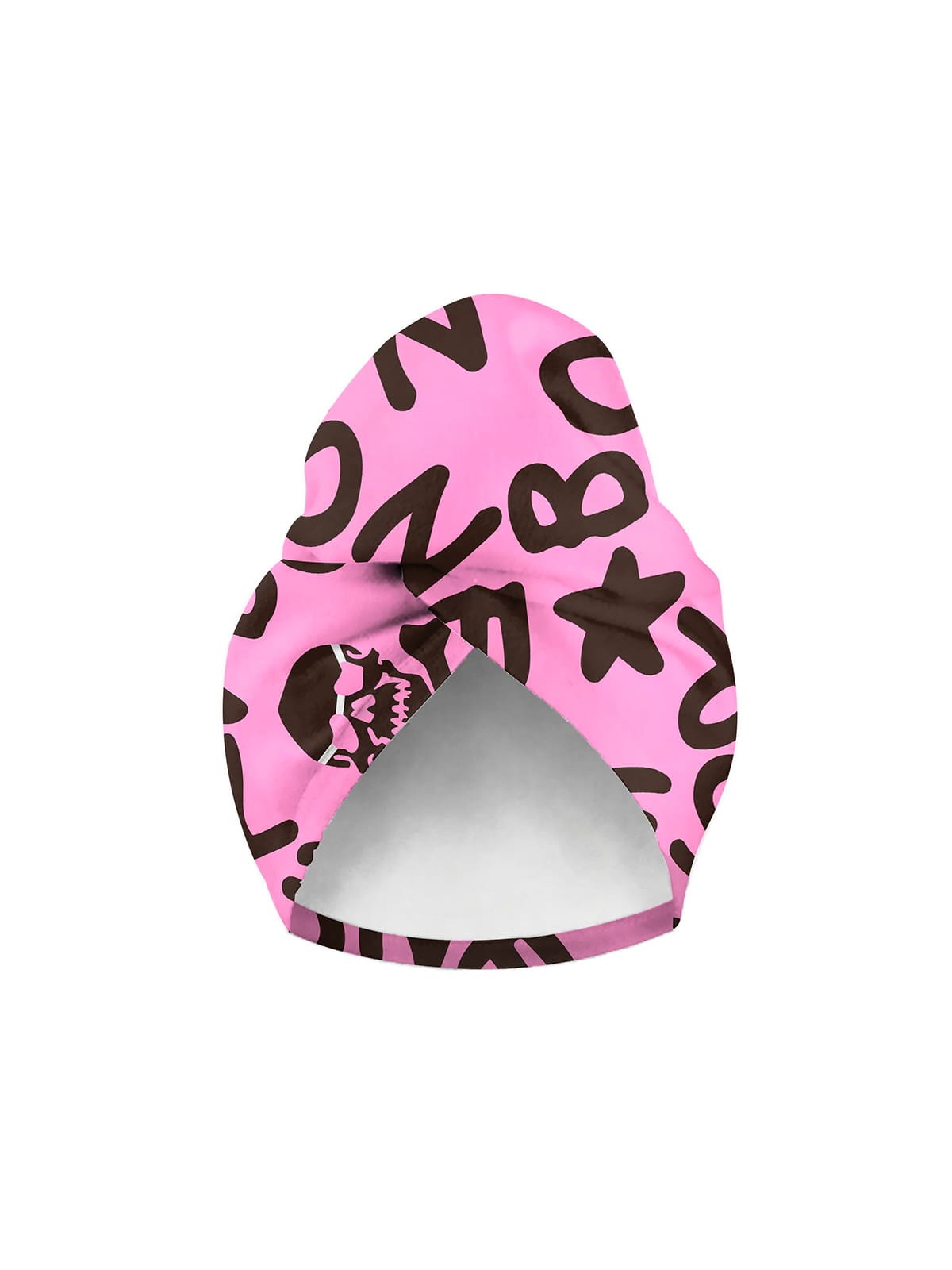 BONESWIMMER tulband, Sahara 36S print in Roze met Chocolade logo. Een Athletische Couture accessoire voor een vleugje stijl aan de rand van het zwembad, perfect om het haar elegant te beschermen.