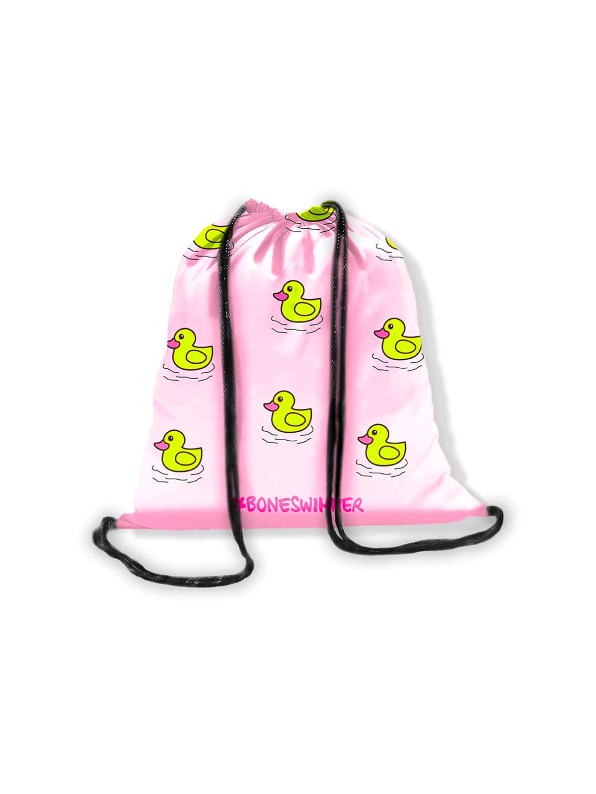 Stijl: ironisch, zorgeloos en bewust kinderlijk, toont deze rugzak een patroon van fluorgele eendjes op een pastelroze achtergrond, dat de wereld van spel en bad oproept met een vleugje pophumor. De uitstraling is bewust naïef, maar doordacht om indruk te maken: het felle kleurcontrast en de stripachtige lijnvoering maken het een perfect accessoire voor wie elke outfit wil verlichten met een speelse nonchalance. Een klein manifestobject voor wie ervoor kiest zichzelf niet al te serieus te nemen en de lichte geest van de vrijste zomers te vieren.